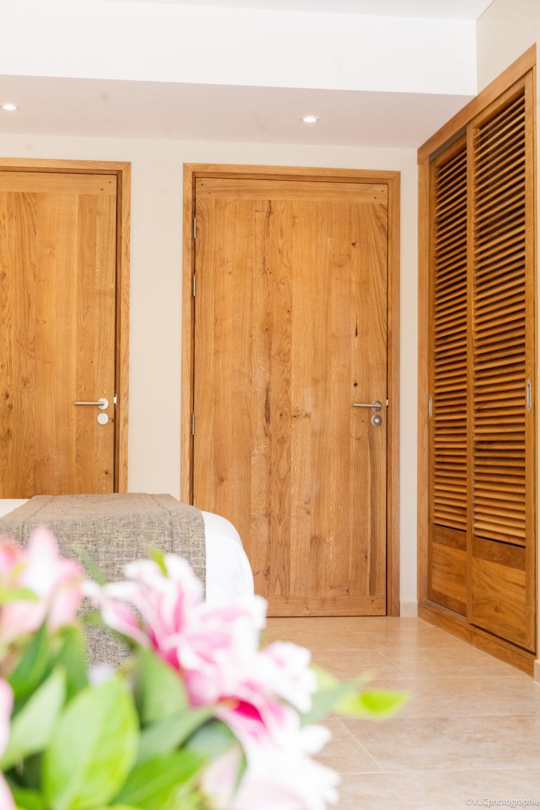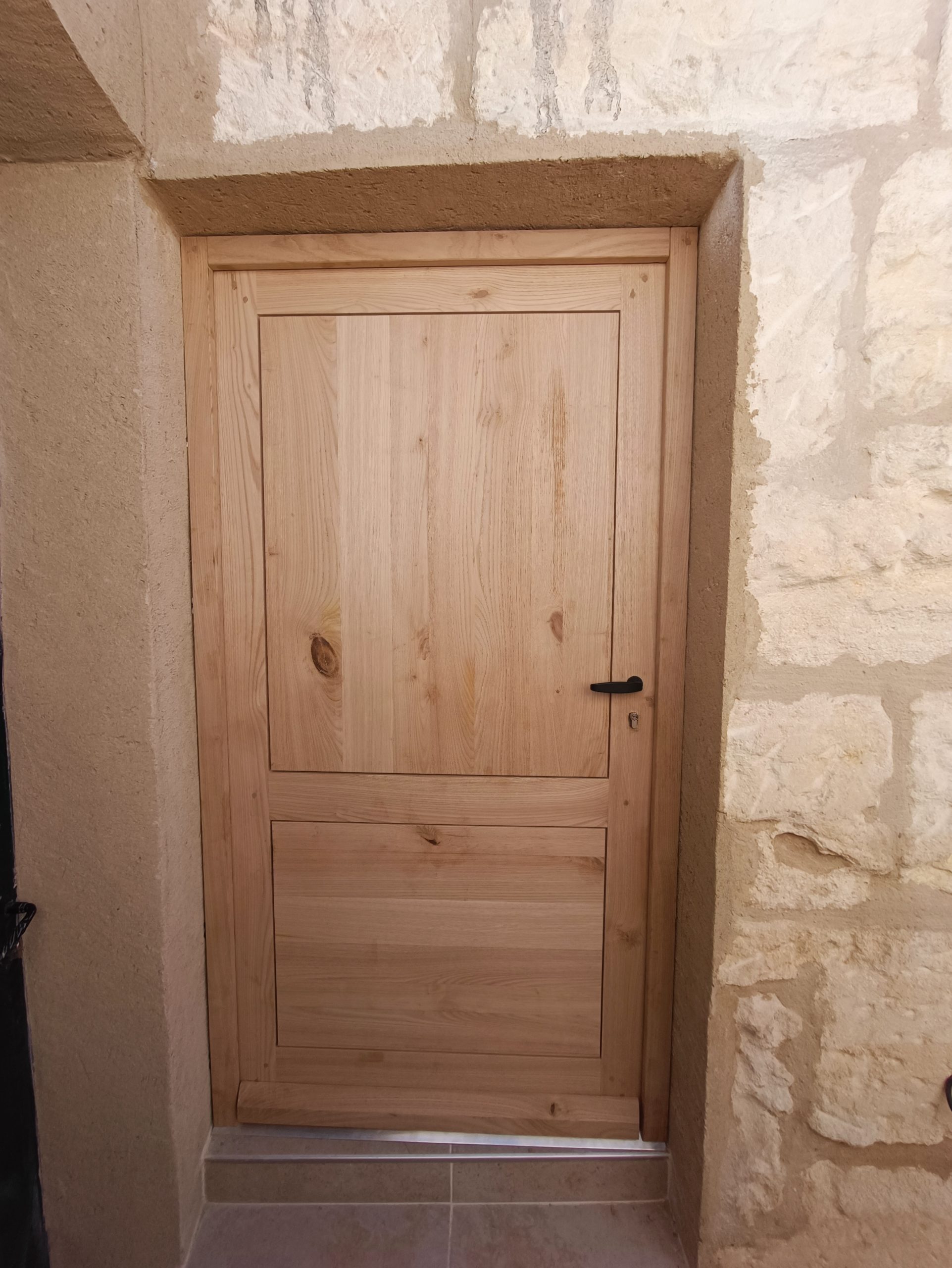 Chaque porte est fabriquée artisanalement, avec un soin particulier apporté aux assemblages traditionnels, aux finitions lisses et aux traitements respectueux du bois. Ce travail minutieux garantit non seulement une esthétique raffinée, mais aussi une durabilité et une résistance à l’usage quotidien.